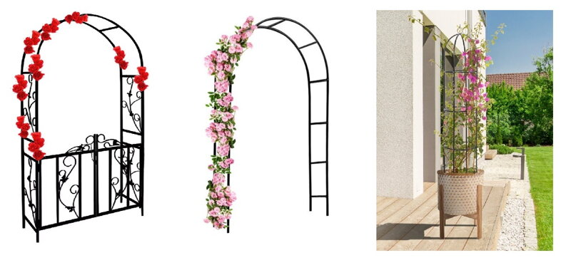 Arcurile de flori vă vor face grădina loc magic romantic. Arcul pentru plante cataratoare iese frumos in evidenta la intrarea in gradina, poteca in gradina, banca sau intr-un spatiu deschis. Este potrivită în special pentru trandafiri, iederă, clematide, viță de vie și hortensii cățărătoare. Plantele cățărătoare se remarcă frumos și pe un spalier din lemn, care poate fi folosit și ca gard sau paravan.