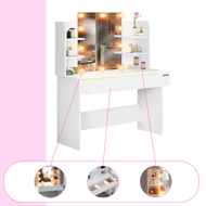 Toaletnița de înaltă calitate Lucia JURHAN® are un design simplu și atemporal și este o decorare pentru orice dormitor sau dressing. Sertarul mare, cu 3 compartimente separate, oferă suficient spațiu de depozitare cu un volum de 50 de litri. Accesoriile de machiaj sau parfumurile pot fi expuse pe cele 4 rafturi practice.