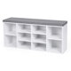 Este greu să vă încălțați pantofii și vă simțiți descurajați la gândul că trebuie să ieșiți afară? Cu acest scaun pentru încălțăminte cu pernă, vă puteți așeza confortabil și vă puteți lega pantofii fără efort. Husa detașabilă se curăță ușor, iar construcția robustă a dulapului din fățuire de lemn permite o încărcare statică de până la 150 kg.