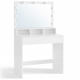 Masa de toaletă stilată de culoare albă conține tot ce aveți nevoie pentru machiajul dvs. Confortul este sporit de cele 9 becuri dimabile, dispuse în jurul oglinzii.